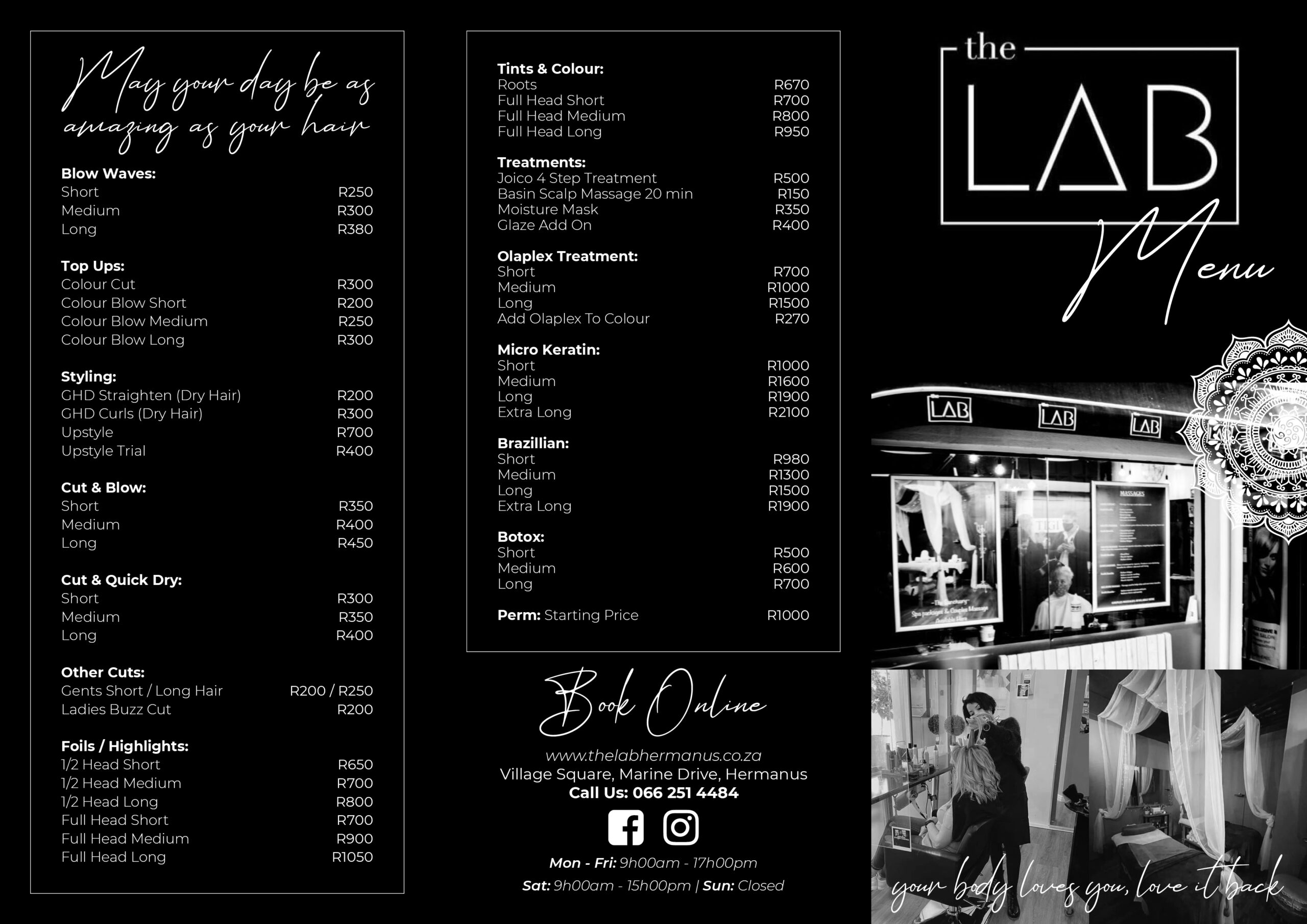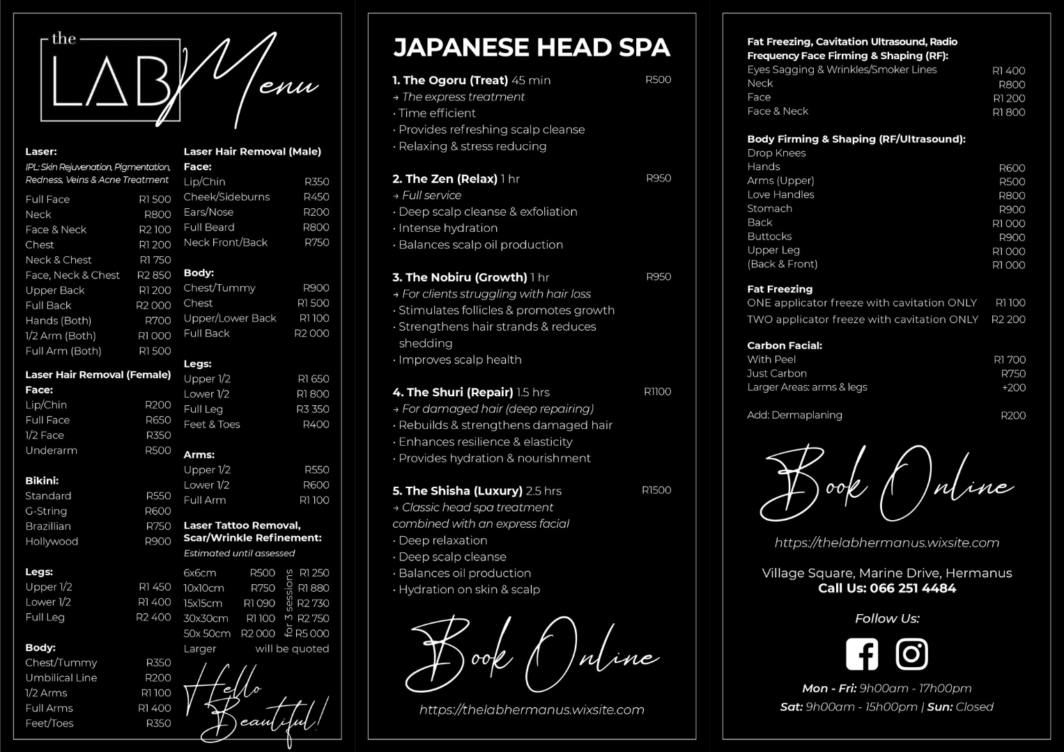 We are a unisex salon in the heart of Hermanus where our clients are embraced like long-lost relatives – no judgment whatsoever, just a whole lotta love and genuine recognition. The Lab offers a wide range of services, from hair and nails to lash extensions and luxurious spa treatments.