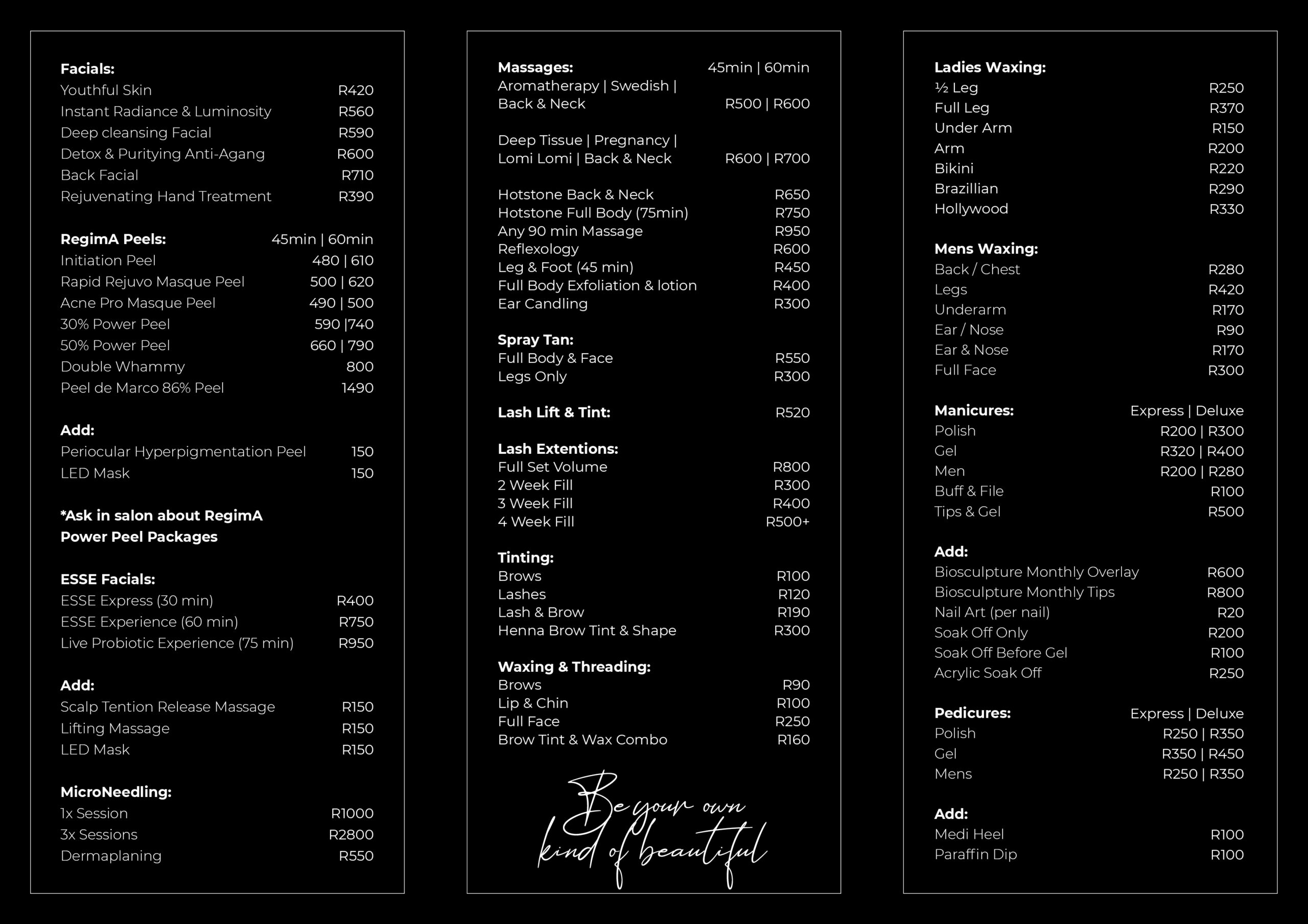 Indulge in our gorgeous range of salon and beauty services designed to cater to your every whim and desire. Our most popular service offerings are listed below!